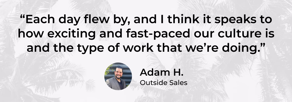 As Adam grew, so did his visibility. Cross-functional teams began reaching out. He became a bridge between retail and other parts of the business. When an opportunity in Outside Sales opened up, Adam was a natural fit.